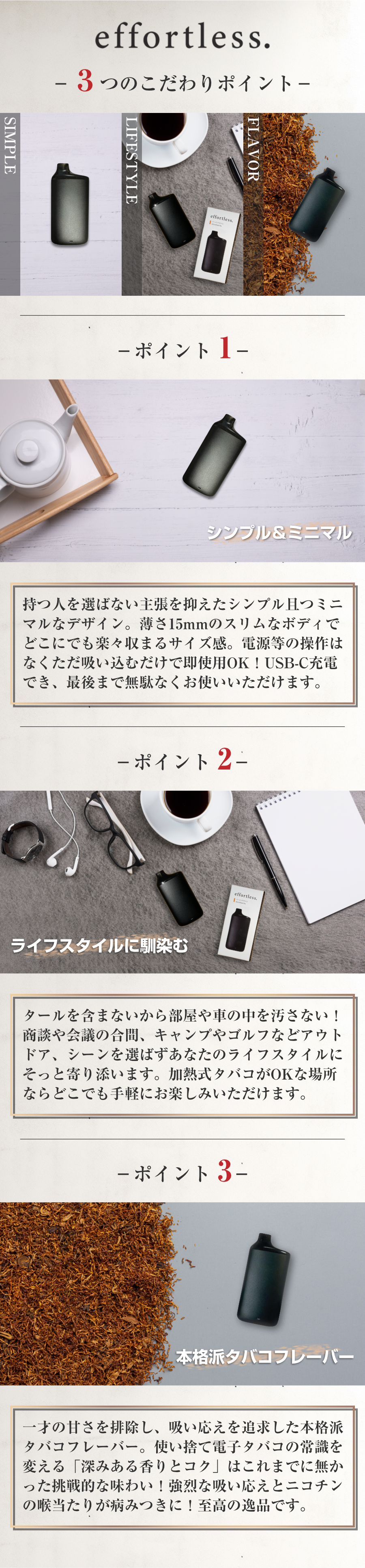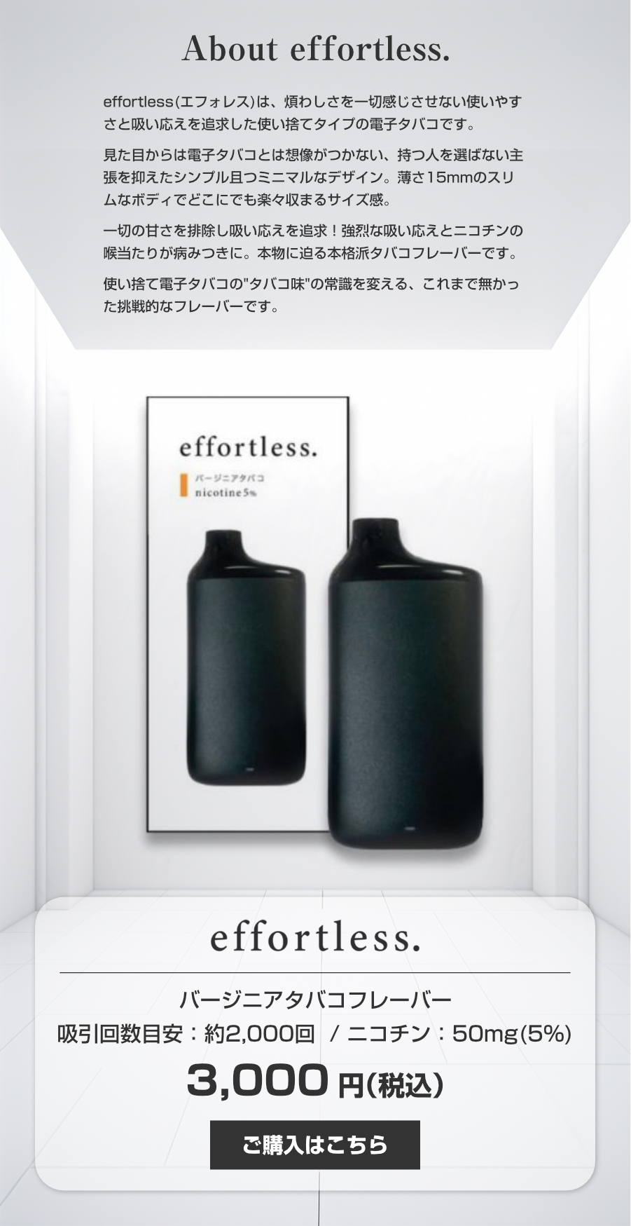 effortless.(エフォレス) - 本物に迫る確かな吸い応え、新世代の電子タバコ -